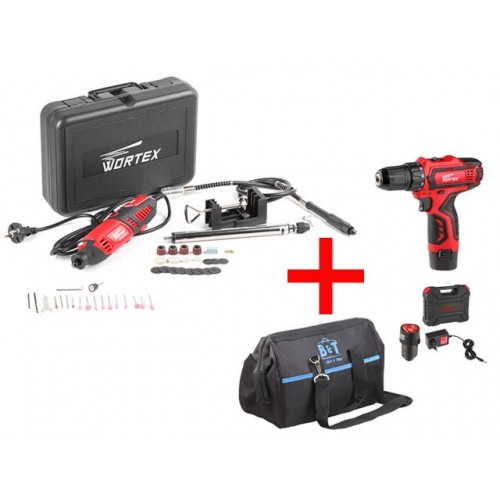 Аккум. дрель-шуруповерт WORTEX BD 1215-1 Li в чем.+MG3218E11411 Гравер + АКЦИЯ сумкка в подарок (В ПОДАРОК к комплекту Сумка для инструмента B&T BA 1