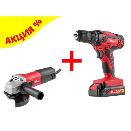 Аккум. дрель-шуруповерт WORTEX BD 2020-1 DLi в чем.+АКЦИЯ AG1210100013 углошлифмашина AG 1210-1 (скидка на комплект 15% + AG1210100013 Одноручная угл