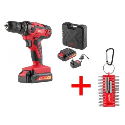 Аккум. дрель-шуруповерт WORTEX BD 2020-1 DLi в чем.+АКЦИЯ Набор бит WORTEX HBS 22 (В ПОДАРОК Набор бит WORTEX HBS 22)