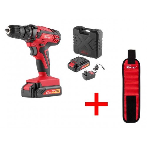Аккум. дрель-шуруповерт WORTEX BD 2020-1 DLi в чем.+АКЦИЯ (В ПОДАРОК напульсник с магнитным держателем WORTEX MW 0509)