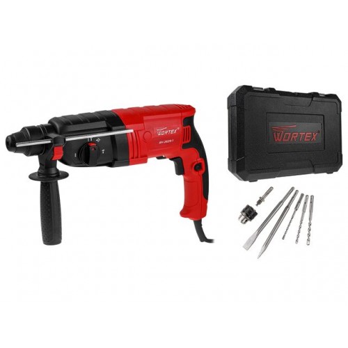 Перфоратор WORTEX RH 2629-1 в чем. + (2 зубила, 3 сверла) (800 Вт, 3.0 Дж, 3 реж., патрон SDS-plus, ключевой в комплекте, вес 3.05 кг)